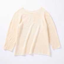 「布の繊維を斜め45度でカットすると生地が伸びやすくなるんですけど、ニットはさらに伸縮性が高いので、“斜行”で編んだ『スパイラルミグ』は本当によく伸びるんです。女性のSSからLLサイズ、男性のMサイズまで対応できるので、この一枚があれば幅広い人に着ていただけるようになっています」(川村さん)