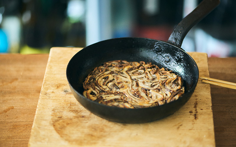 今回ご提案するのは、里芋を里芋で和える「共焼き」。むいた皮は捨てずにサクサクのガレットとして食べられるよう、おまけのレシピも用意しました。