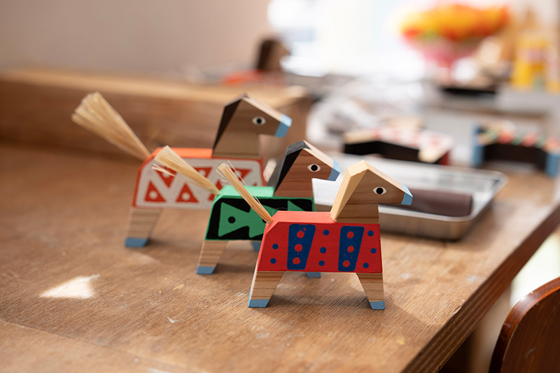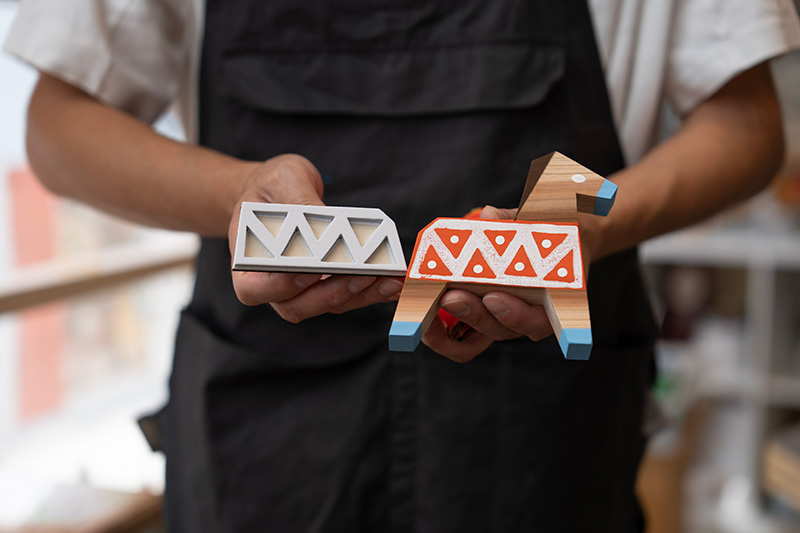「古い玩具の中にあるモダンで新しいエッセンスを見いだしたくて。逆に、モダンに見えるけど土着的な要素や手仕事を感じるものにも惹かれます。その両方向から近づけるプロダクトづくりやデザインがしたいですね」と軸原さん。