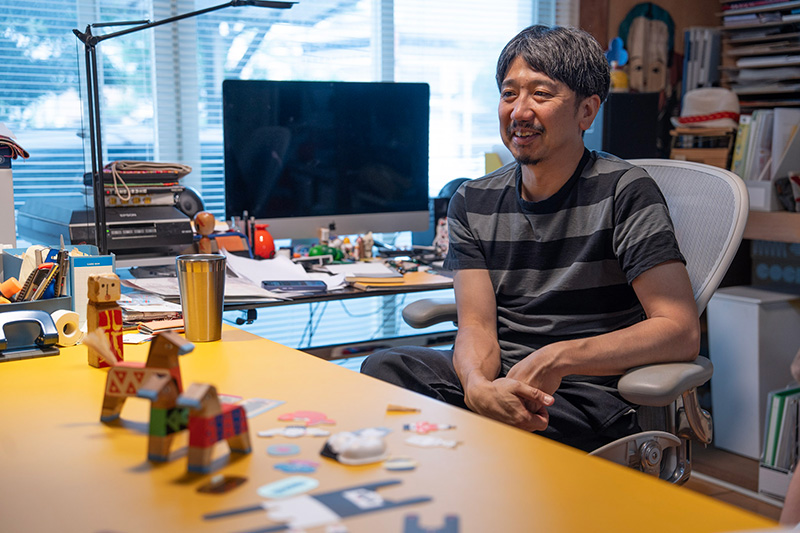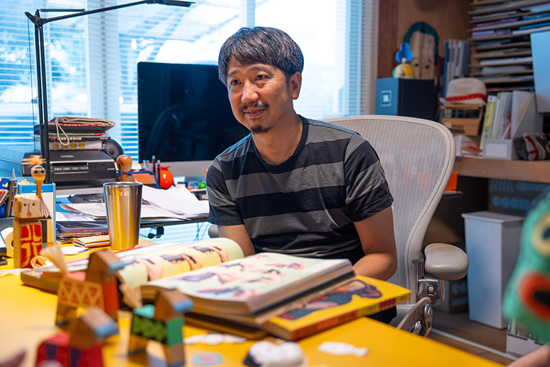 「パッケージのお仕事も多いんですが、専門というわけではないんですよ」と笑う、軸原ヨウスケさん。