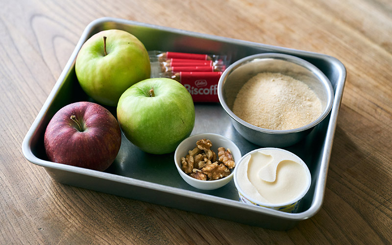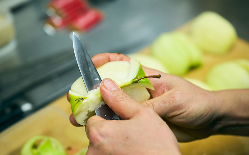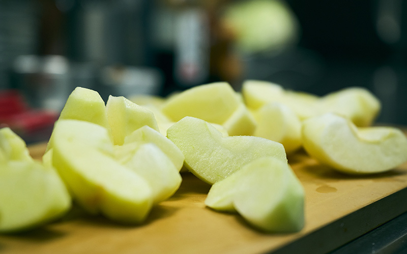 ひと口にりんごと言っても種類はさまざま。加熱に向くもの、生で食べておいしいものといろいろありますが、撮影ではグラニースミスという青いりんごを中心に使ってみました。