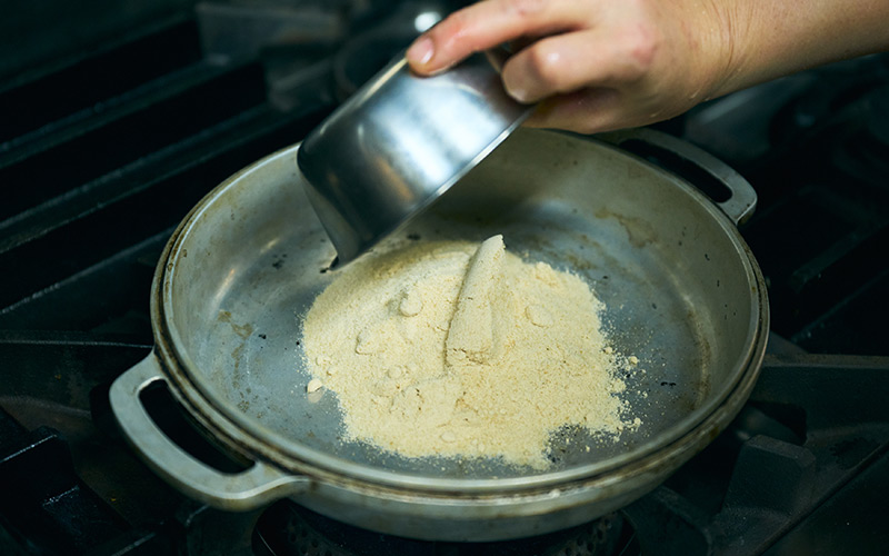 鍋(焦がしてもよいもの)を熱し、砂糖を入れる。色が変わってきたら弱火に。