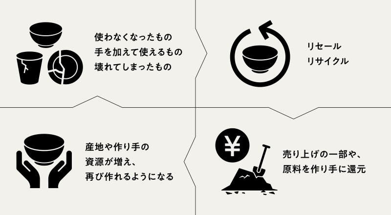 再販売による売上の一部はメーカーや産地へ還元し、次のものづくりを支える力になることも目指しています。