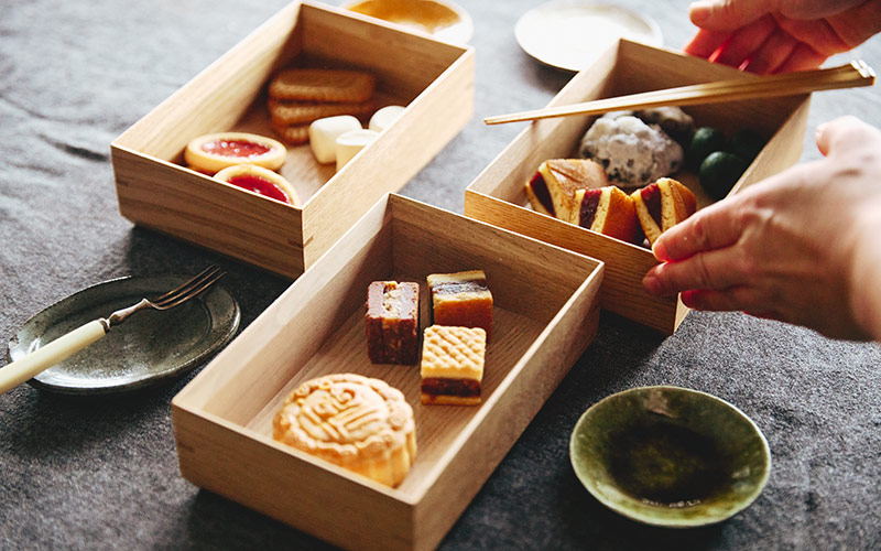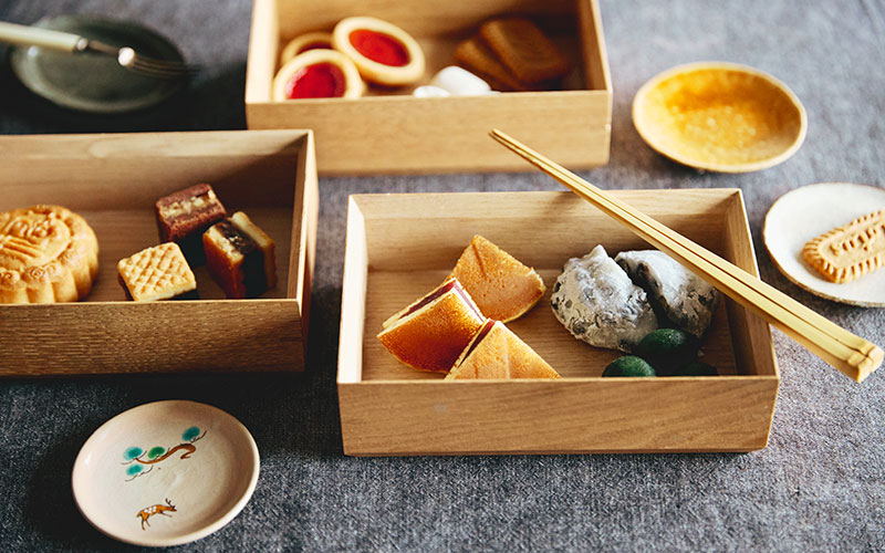 友人や家族とのお茶の時間にこのお菓子重を出して銘々につまみつつ、少し余ってしまったらそのまま蓋をして置いておけます。そんな気軽さがお重のいいところだなと思うんです」