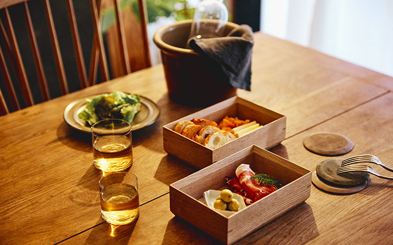 お酒の時間に、少しずつ色々なおつまみをいただきたいとき、お重を使ってみるのはいかがでしょうか。凛とした佇まいが上質な時間を飾ってくれます。