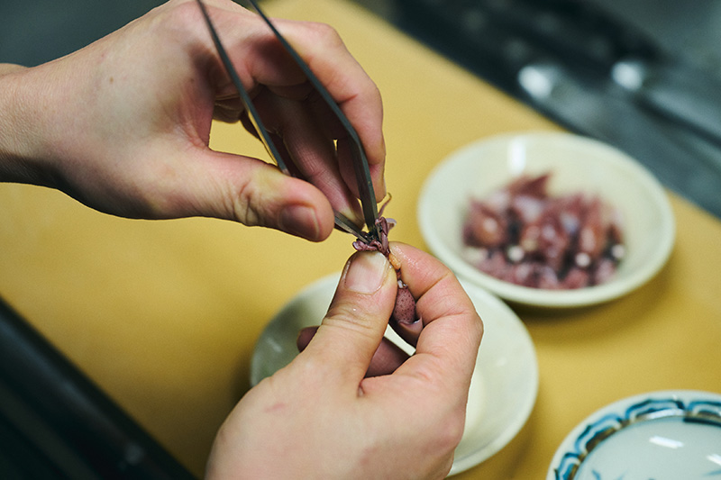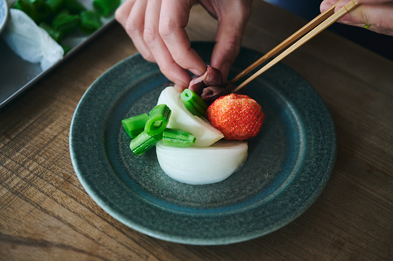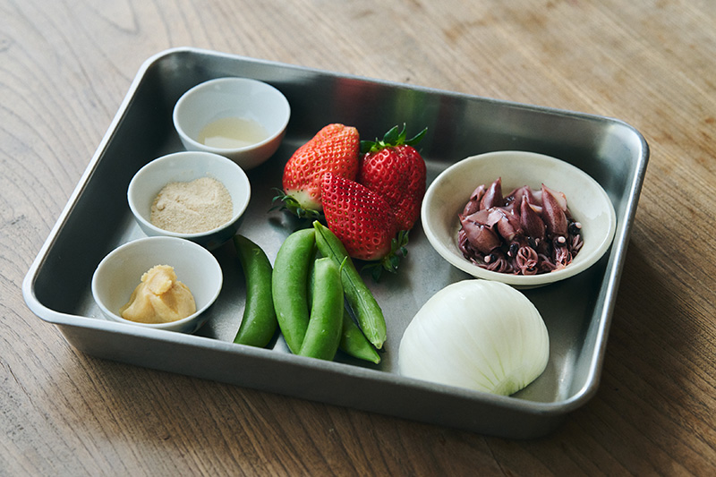 今回は大好きな古都華と、ホタルイカを酢味噌和えに。大きなホタルイカは内臓をがたくさん詰まっていてソースのよう。さっと気軽に、火を使わずに作れるひと皿です。