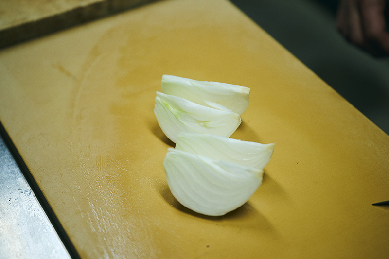 新玉ネギの芯は取らず、くし切りにする。蒸し器に入れて、塩少々(分量外)をしてから、串がすっと入る程度まで火を通す(蒸しの場合、10分ほど。電子レンジで軽く温めるでも可)。