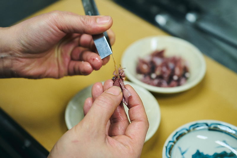 ピンセットなどを用いて、目玉とくちばし、骨を取る。