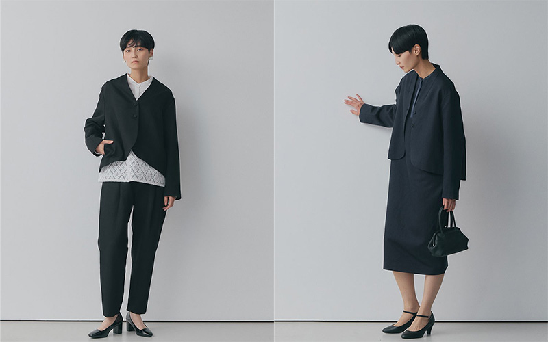 「中川政七商店のセミフォーマルシリーズでは、毎年お客様から届く様々なお声も参考にしながら開発しています。そのなかで、スタイルが良く見える、少しだけ細めのシルエットのご要望にお応えできたらと思い作ったのが、今回のシリーズです。小柄な方で、ワンピースが少し大きいという場合には、ジャケットとセットアップでスカートを着用していただければと思います。