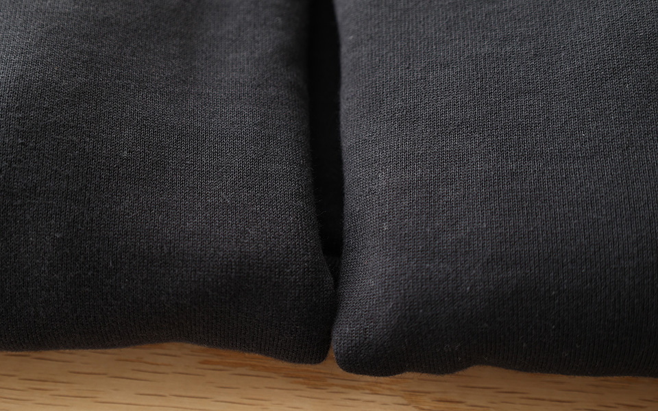 しっかりした生地感は7年目でも健在であまり違いがわからないほどでした。襟ぐりや縫い目などは少し白化してきますが何年もかけての今の状態なので、ほんとに十年単位でどうぞよろしくと思えるスウェットです。